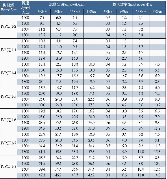 IVP型單聯(lián)泵流量、輸入功率特性 |